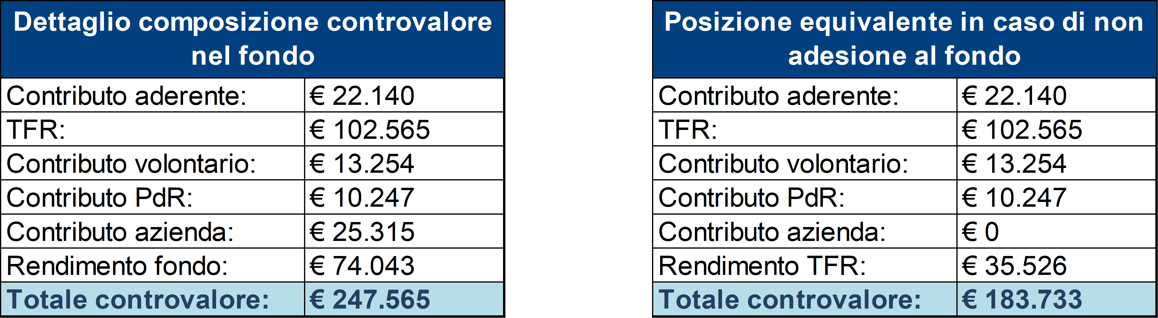Il confronto fra il primo iscritto e il suo ipotetico gemello che ha deciso di non iscriversi è quindi particolarmente significativo e mostra come, in un’ottica di lungo periodo, l’investimento del fondo pensione sia sinora riuscito ad assolvere al suo compito istituzionale di accrescere il capitale degli associati in vista della pensione.