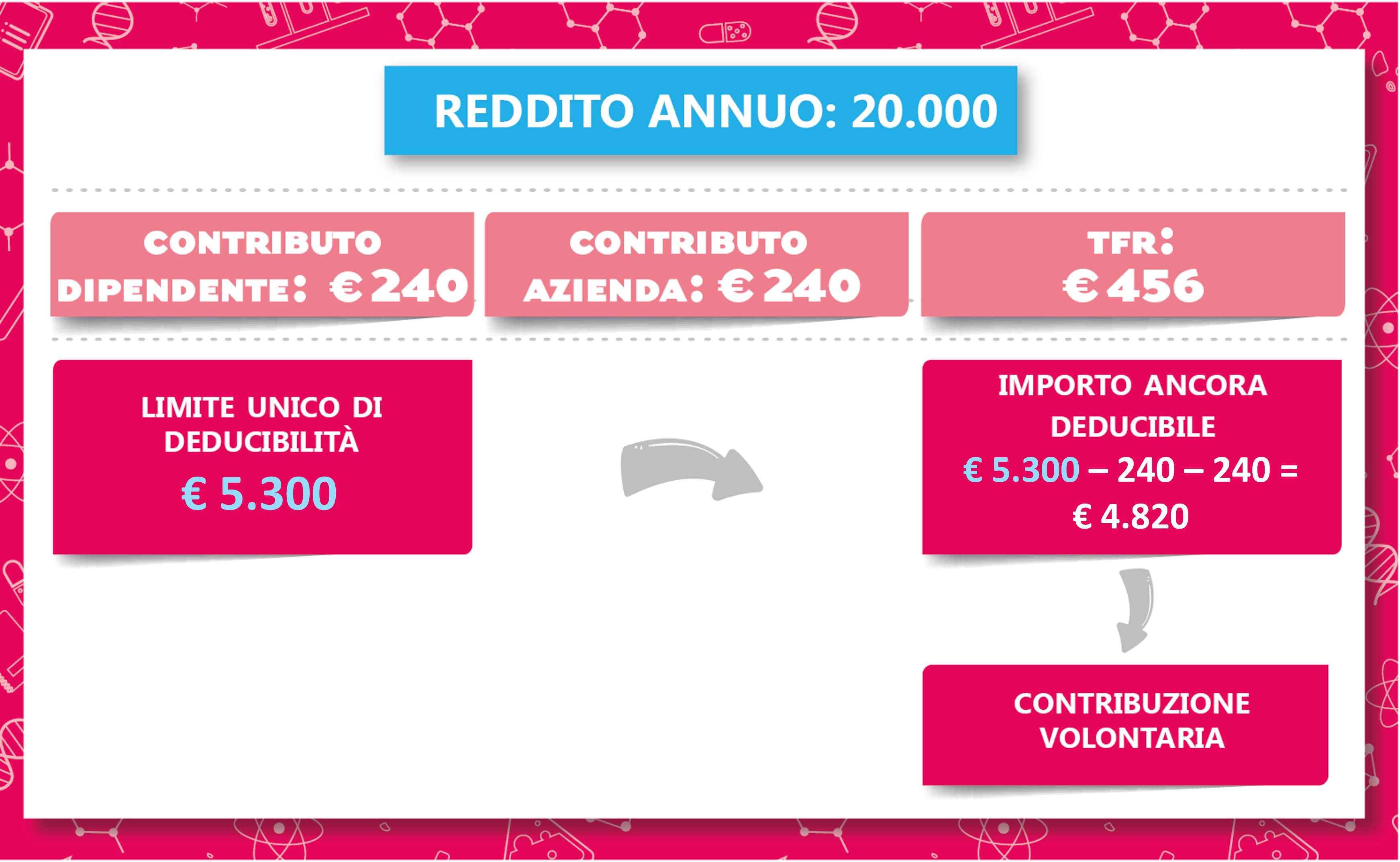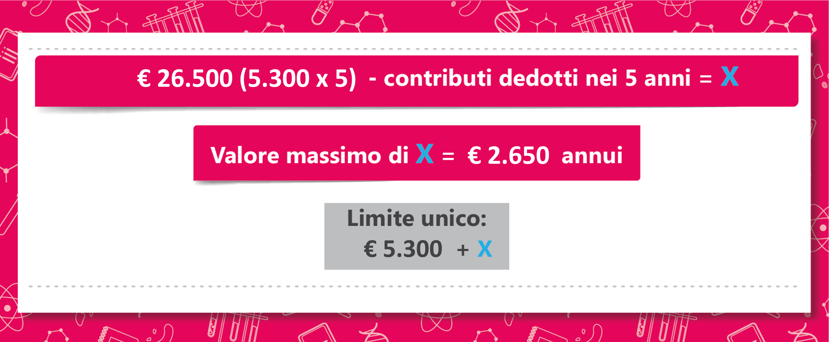 L’introduzione di un limite unico di deducibilità, pari a € 5.300, agevola considerevolmente il calcolo della quota di contribuzione volontaria che si può annualmente versare a Fonchim.